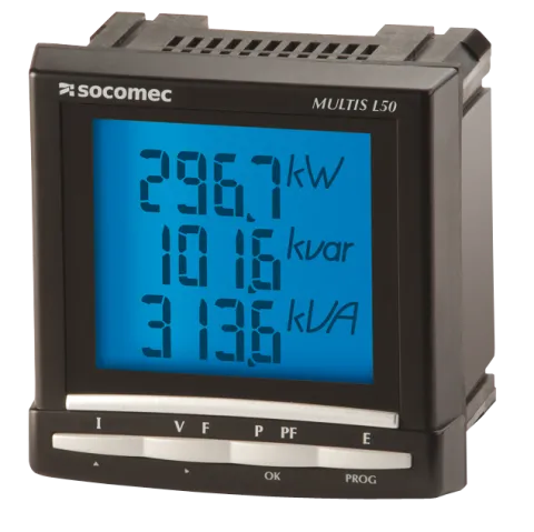 | Description | Digital panel meter MULTIS L-50 three-phase via CT up to 6000A 96 x 96 mm multi-measurement and energy values directly on its large backlit LCD display |