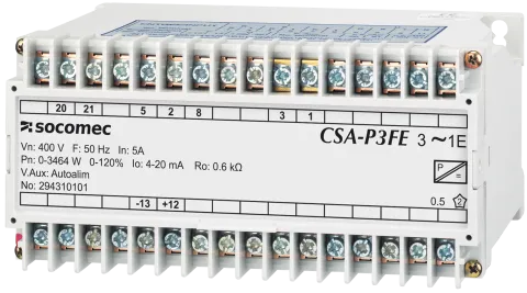 | Description | Transducer CSA-A4 input : 400V, 5A output : 4-20 mA, 0-10 VDC, 230 VAC auxiliary power supply, 50 Hz Transducer convert an electrical parameter into a DC signal |