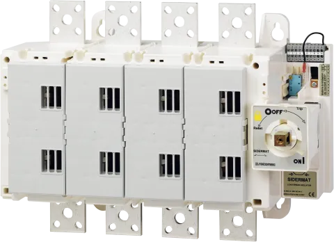 | Description | Manual Load break switch with tripping function and visible breaking SIDERMAT with a shunt trip coil 230 VAC with 4 poles, 1800A, 690 VAC frontal direct or external frontal operation with handle type S3. Delivered without handle |