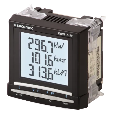 | Description | Multifunction power meter DIRIS A-20 panel mounted with Optional Modbus communication protocols and Optional RS485 communication ports, power meter for low voltage electrical installations, compatible with 1A or 5A secondary CTs |