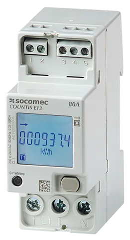 | Description | Modular active energy meters COUNTIS E18 MID-certified Single phase - direct 80A, meter have native Ethernet communication capability, fully integrated in SOCOMEC ecosystem including: Webview/screens/gateways/configuration software |
