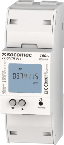 | Description | Modular active-energy meters COUNTIS P14 MID-certified Single phase - direct 100A, MODBUS type of electrical protocols, fully integrated in SOCOMEC ecosystem including: Webview/screens/gateways/configuration software |